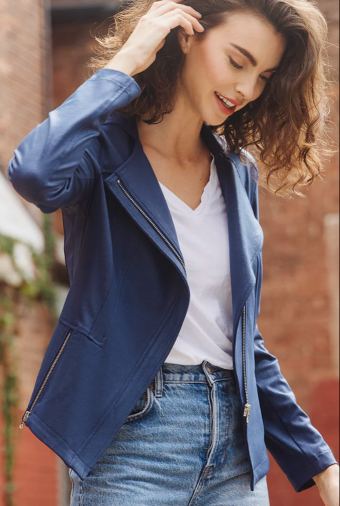 This Liquid Leather Jacket is a style you can be sure will age like a fine wine! Made from a beautiful signature stretch knit, it is extremely lightweight in a soft "lambskin feel" fabric and soft matte finish.