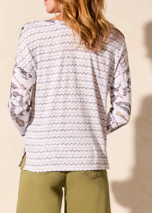 Tribal Long Sleeve Button Front Blouse-50% OFF