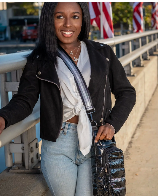The Original WanderFull Hydrobag-Glossy Black With Stripe Strap