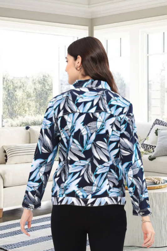 Faux Leather Button-Front Collar-Accent Jacket-NEW
