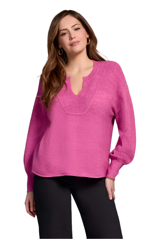 Tribal Notch Neck Puff Sleeve Sweater-NEW