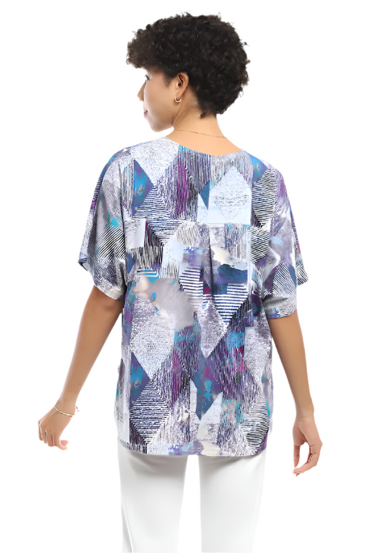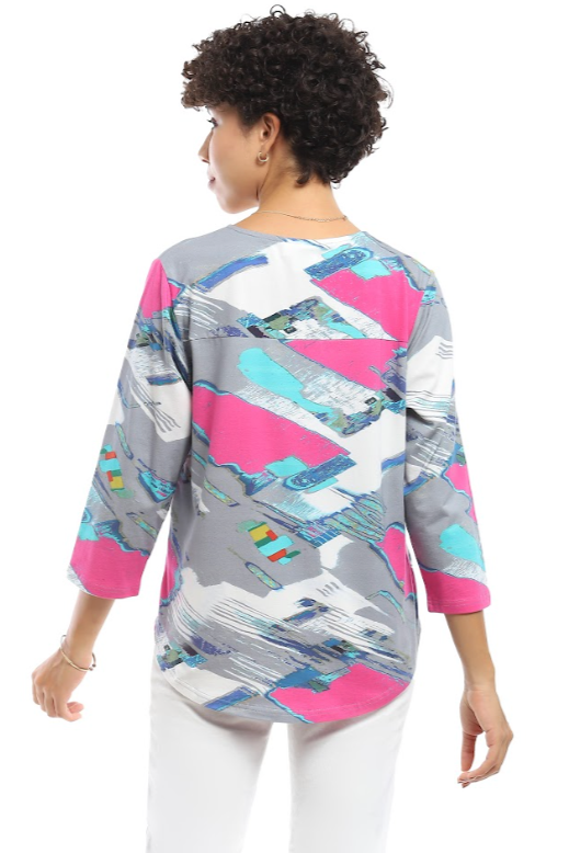 Tribal Combo Print Reversible 3/4 Sleeve V-Neck Tee-50% OFF