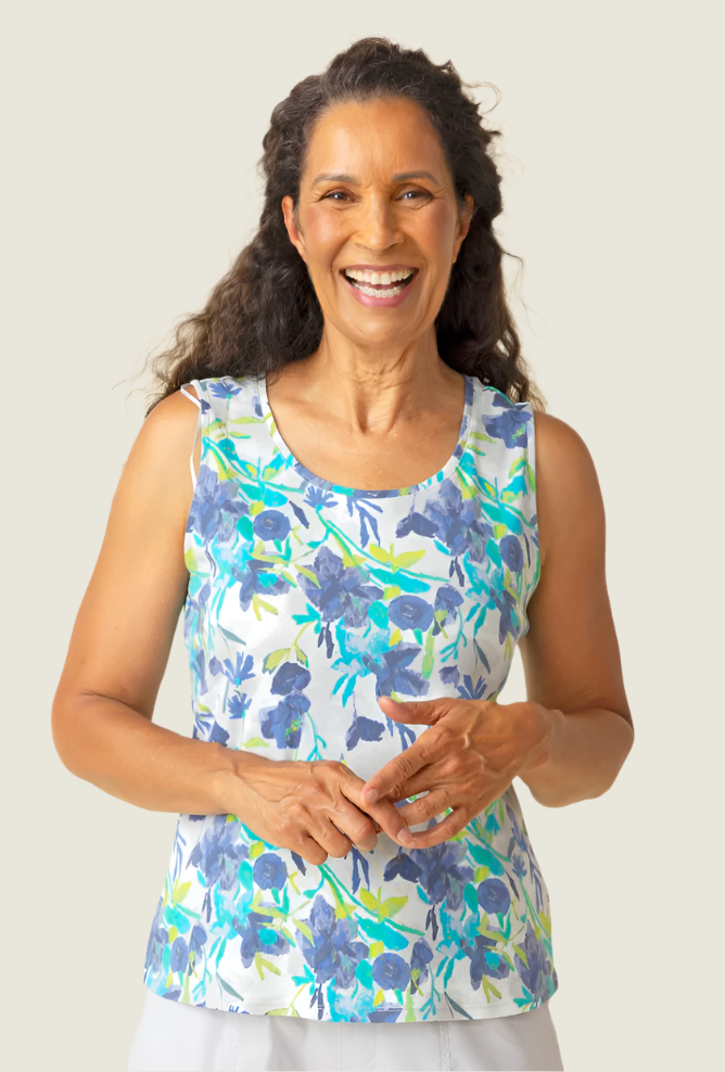 Super soft cotton micro rib is printed with our exclusive watercolor floral.