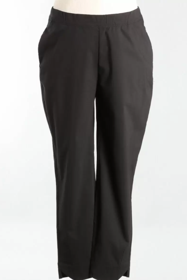 A greatwardrobe basic, the Straight Ankle Pant is part of the suitcase-friendly Travel Tech collection. The fabric style is a wind breaker/parachute like feeling. It has an elastic waistband, on-seam side pockets, and a long straight leg that tapers a bit with a slit at the ankle-length hemline. Perfect for casual days, these pants offer effortless style and ease of movement, making them a go-to choice for everyday wear.