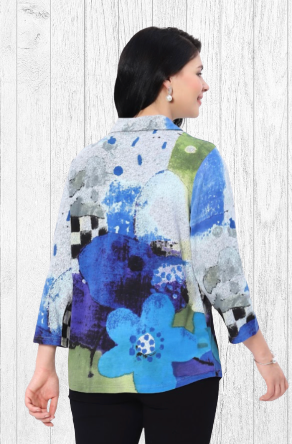 The beautifully soft and breathable knit fabric makes this top perfect for all-day, any-day comfort. Features a button front neckline, bracelet length sleeves, and a gently curved hem that falls to mid hip.