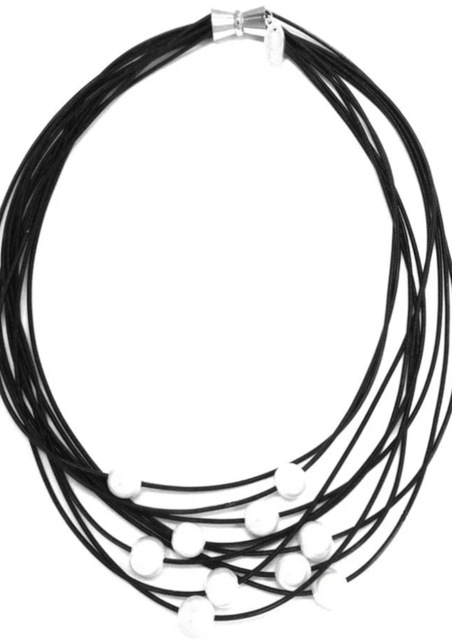 Black 10 Layer Piano Wire Necklace with White Fresh Water Pearls