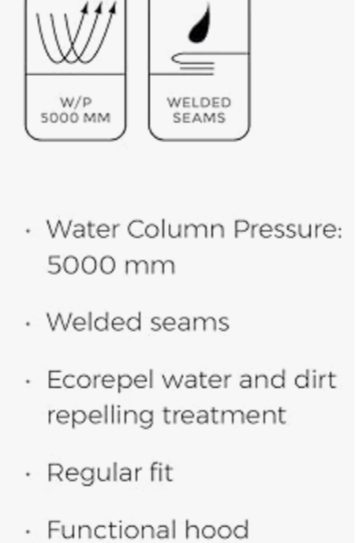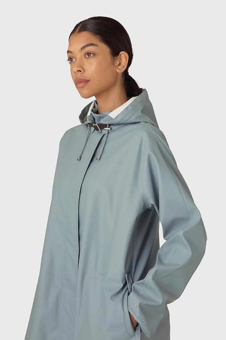 The raincoat is made in a light and subtle waterproof rubberized PU material with a tricot backside, that makes the raincoat extremely comfortable to wear.