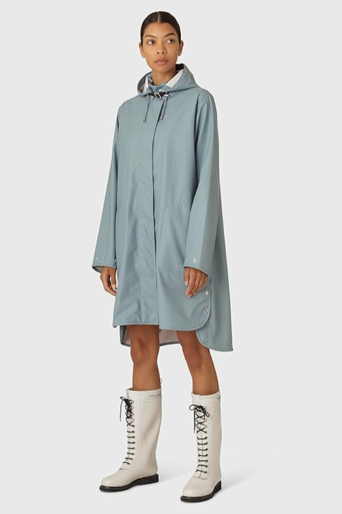 This A-shaped raincoat from ILSE JACOBSEN HORNBÆK is a modern interpretation of the classic raincoat with a loose fit and details that makes it suitable all year round. Just add a sweater or a quilted layer underneath when the temperature drops!