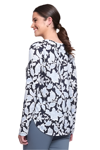 Introducing the Foil STIR IT UP TOP. Crafted with a round neck and in a luxurious linen jersey, this top features long sleeves and comes in 2 striking prints. Perfect for everyday wear, elevate your style with this sophisticated piece.