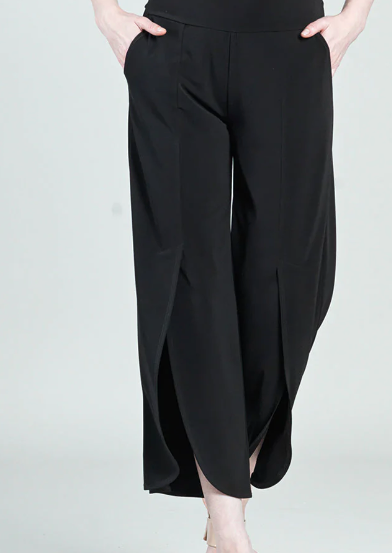 Stride through the breeze like a flower in the wind, wearing the Front Slit Ankle Petal Pant! This style features a 3" pull-on soft waistband, two standard side pockets, a vertical center seam detail that transitions into a 16" front slit which creates a delicate, petal-like drape, that catches the air and allows little peeks of leg to show with each step you take.