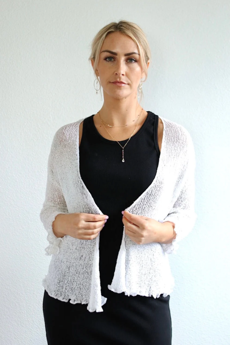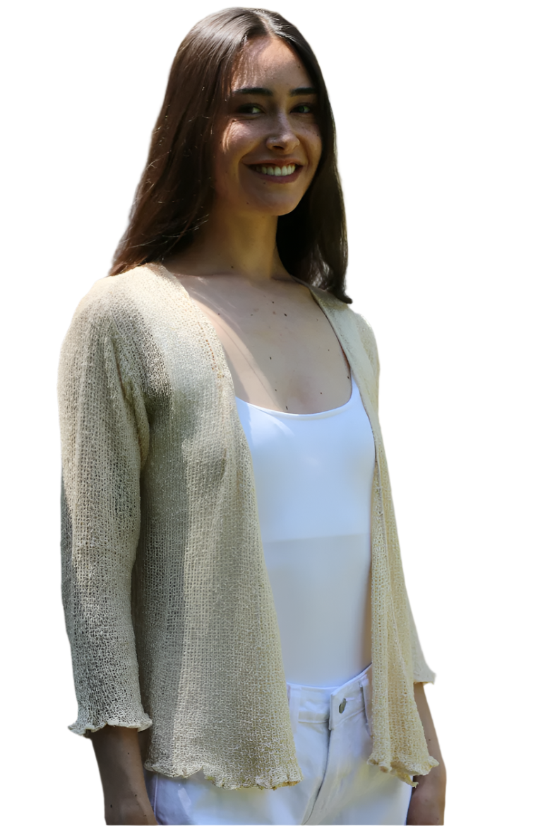 Judith Perfect over sleeveless top. Lightweight and airy feel. I’m wearing sleeveless tops again because of this shrug. I have more than one color—the colors are lovely.