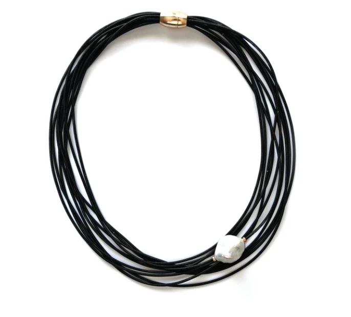 10 strand black wire necklace with large baroque fw pearl and magnetic clasp