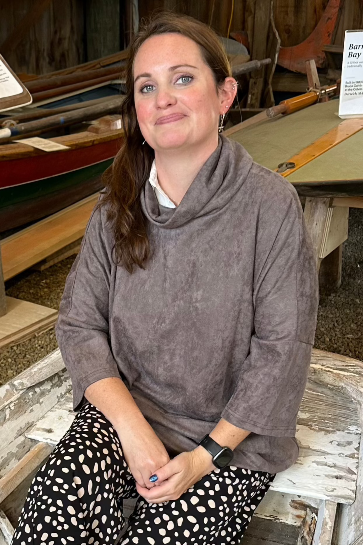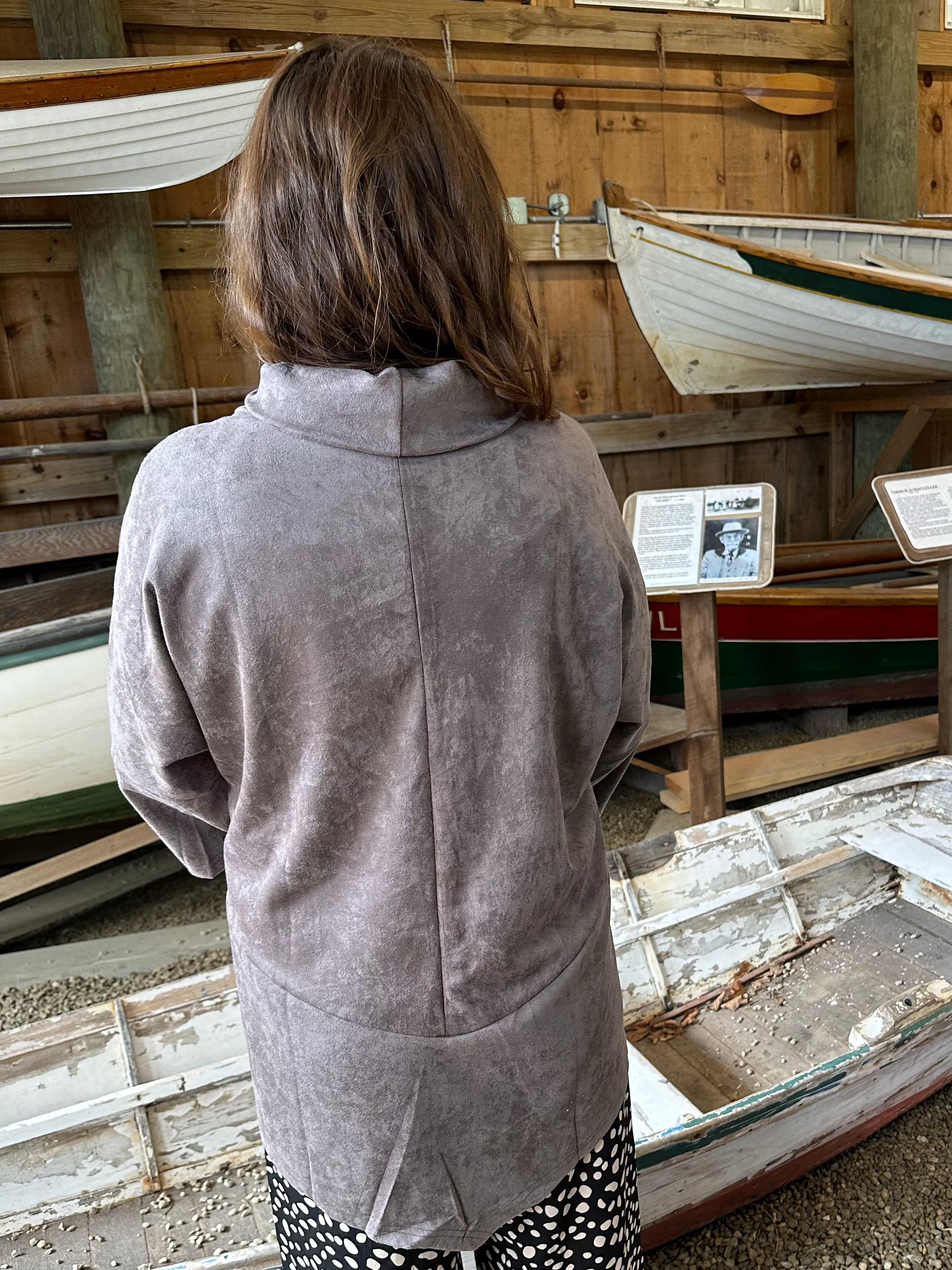 This Faux Suede Cowl Neck Top, is crafted from the softest faux suede with slight stretch giving you both ease and comfort. The relaxed fit is very generous and features elbow-length sleeves, drop shoulders, two pockets and a pointed hem. The softly draping cowl neck, perfect for cool days.