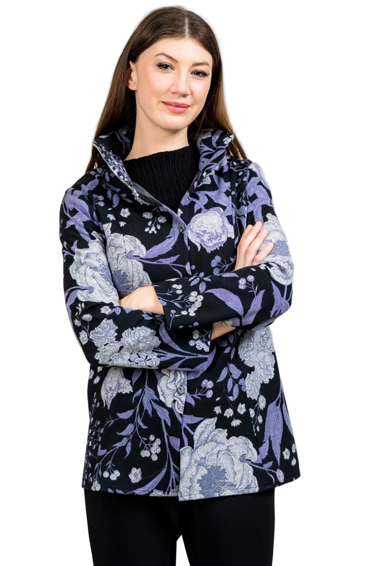 - Black/Purple Floral Print Jacket