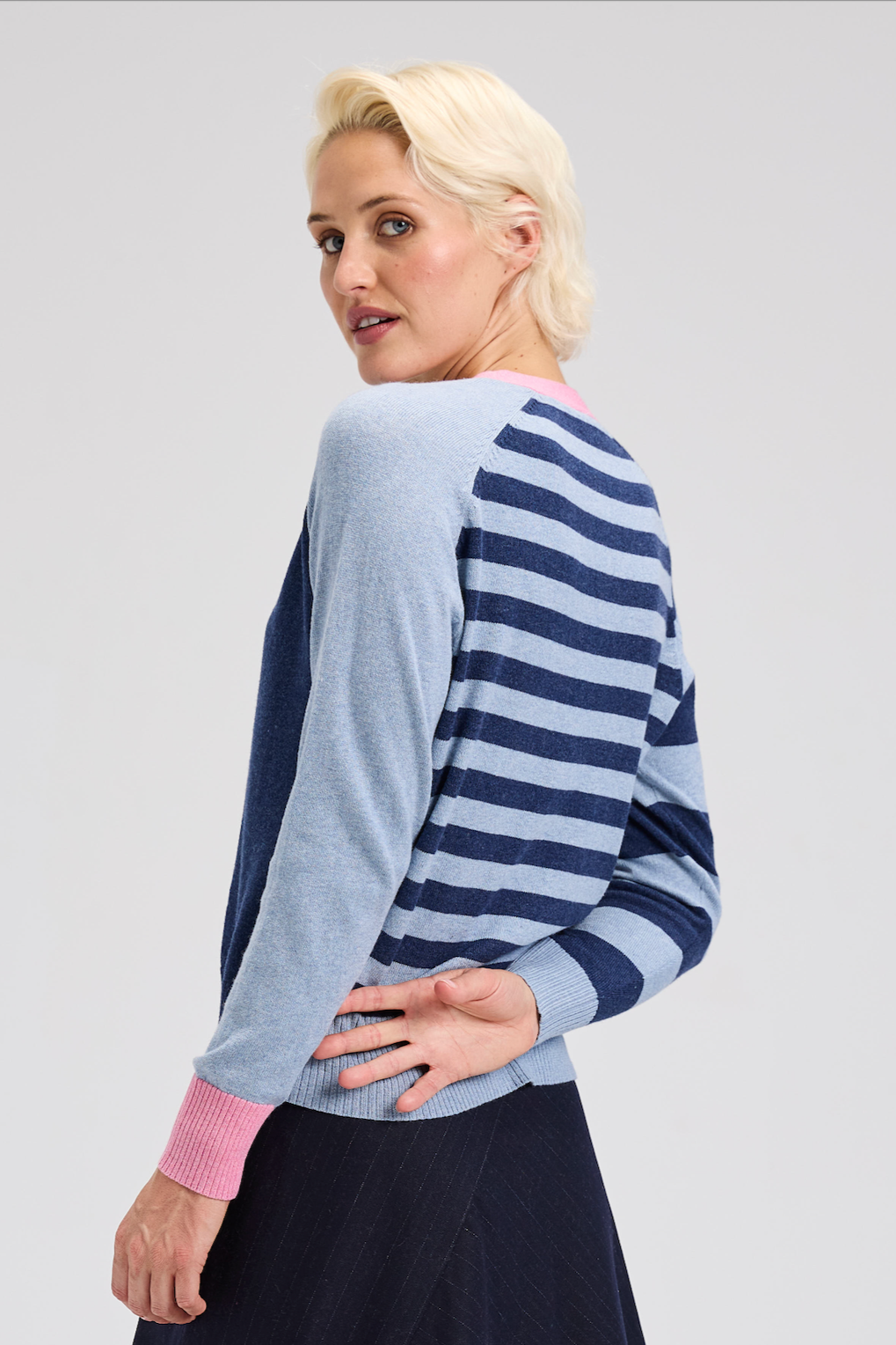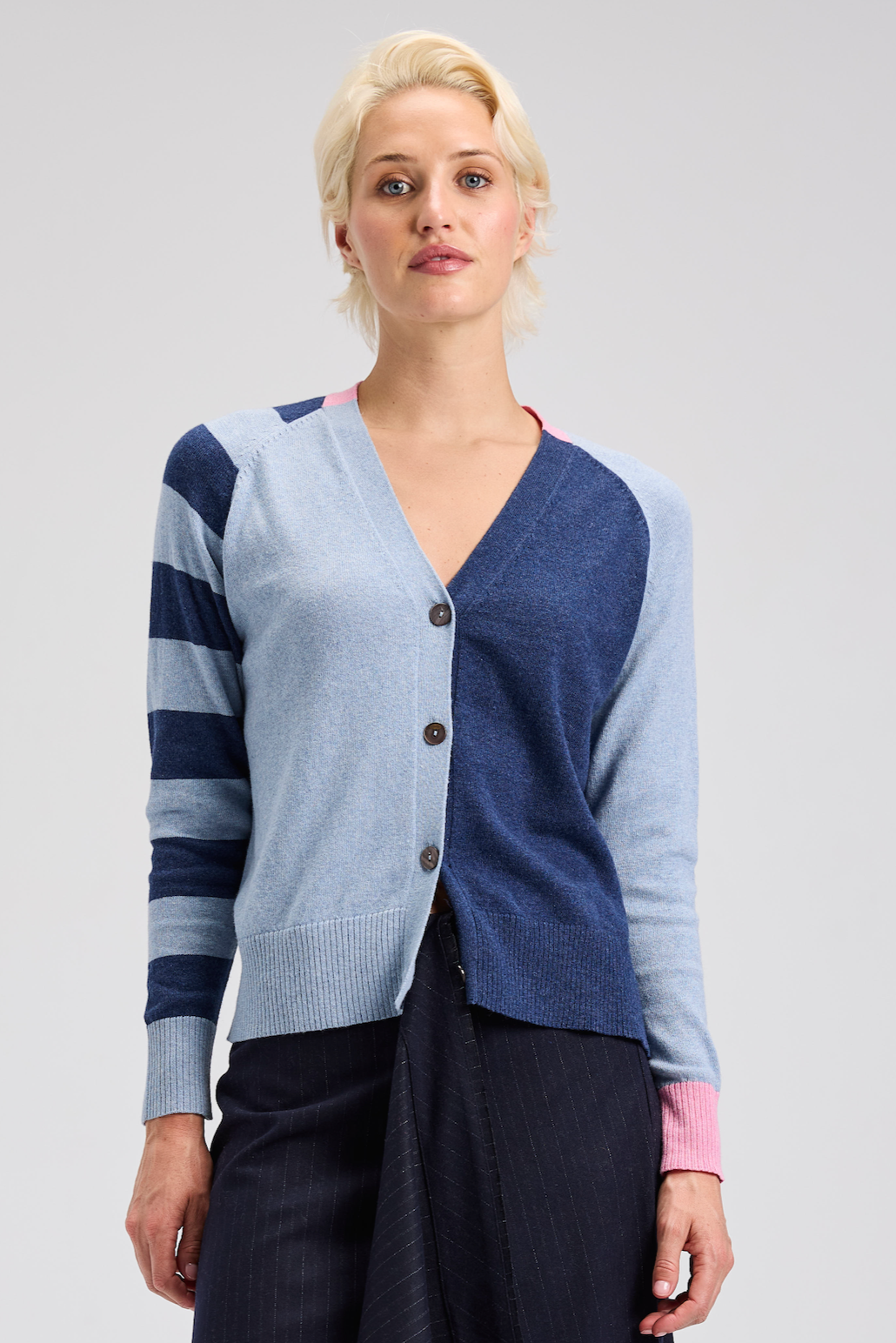 Elevate your wardrobe with this Zaket & Plover V-Neck Cardigan, crafted from a soft cotton blend for lasting comfort. Its refined color block design with solids and stripes adds great visual interest, making it a versatile layering piece that effortlessly complements both casual and polished looks. Perfect for transitional seasons, this drop shoulder cardigan combines timeless style with everyday practicality.