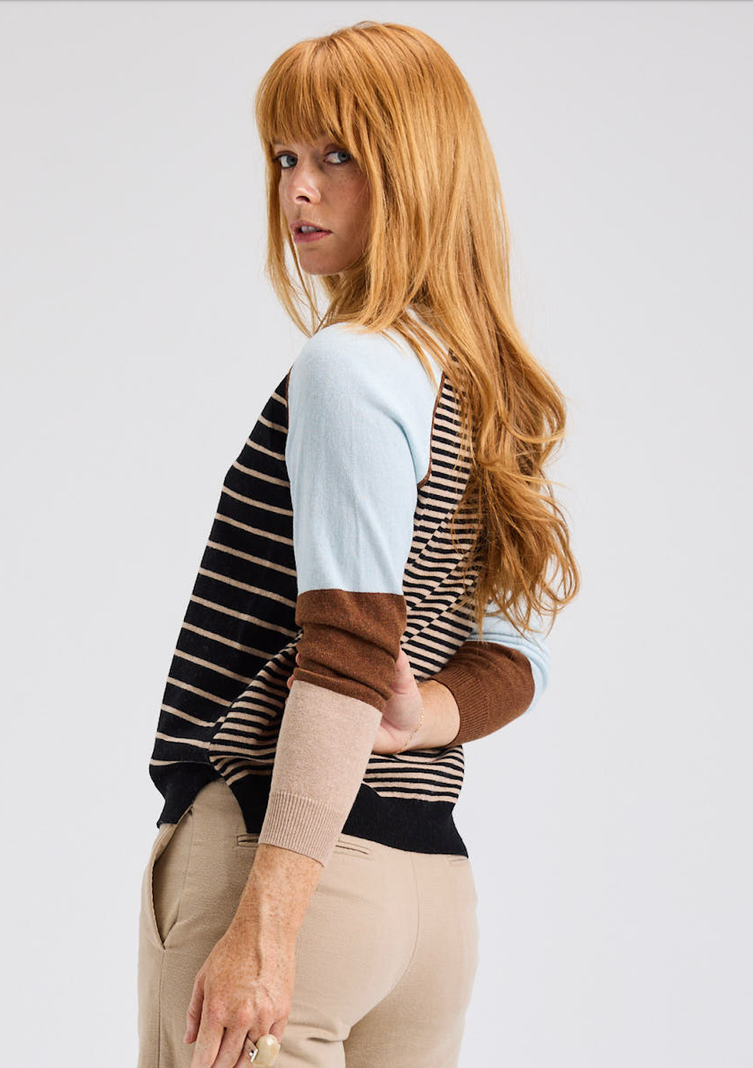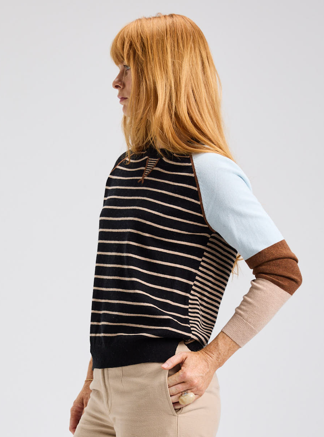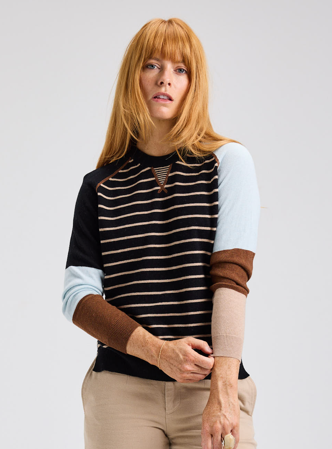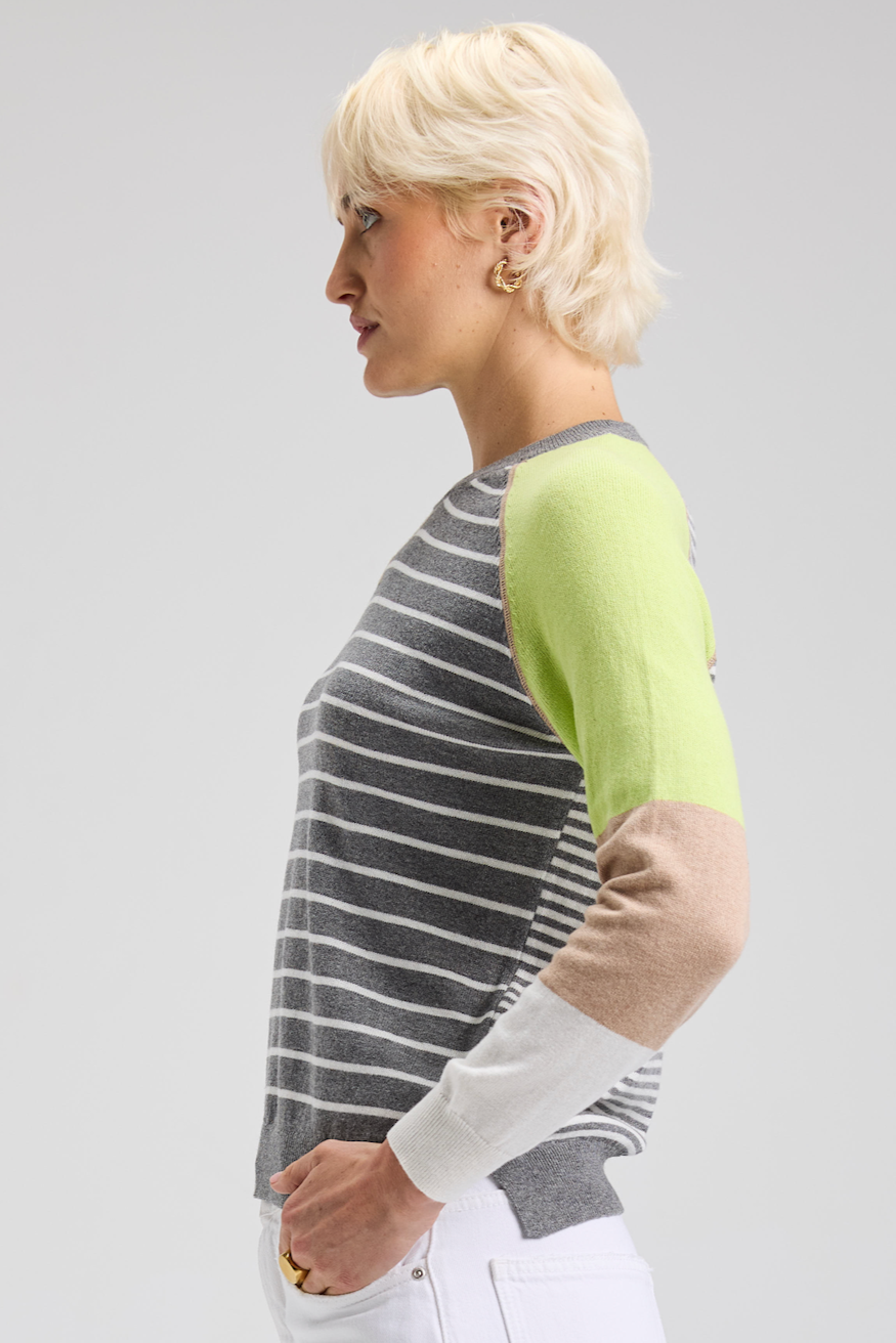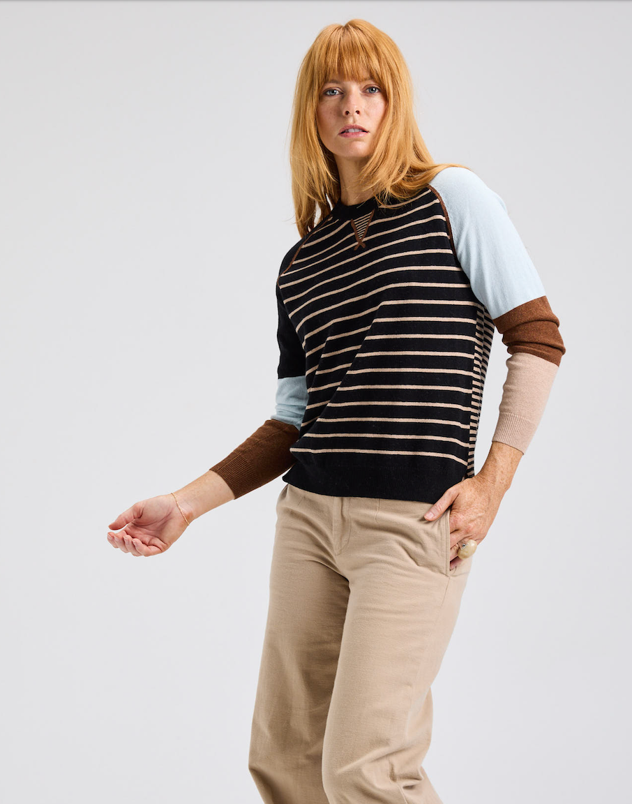 You'll love the bold and delicate stripe detail of this new sweater from Zaket & Plover. The front is accented with thin stripes along the body, while it's sleeves feature a chunkier color block design.